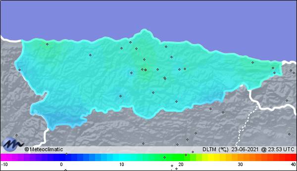 | 23-06-2021 | | | Máx. | Mín. | | | Temperatura | 17,1 | 13,2 | °C | | Humedad | 90 | 66 | % | | Viento | 24 | n/a | km/h | | Presión | 1.029 | 1.025 | hPa |