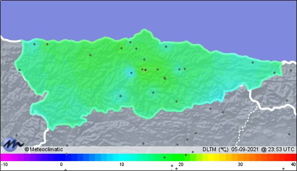 | 05-09-2021 | | | Máx. | Mín. | | | Temperatura | 32,9 | 12,4 | °C | | Humedad | 95 | 25 | % | | Viento | 17 | n/a | km/h | | Presión | 1.019 | 1.012 | hPa |