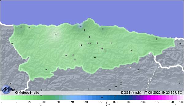 | 17-08-2022 | | | Máx. | Mín. | | | Temperatura | 20,2 | 16,2 | °C | | Humedad | 93 | 73 | % | | Viento | 32 | n/a | km/h | | Presión | 1.022 | 1.012 | hPa | | Precipitación | 3,0 | mm |