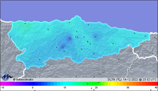 | 14-12-2022 | | | Máx. | Mín. | | | Temperatura | 16,2 | 8,7 | °C | | Humedad | 98 | 78 | % | | Viento | 7 | n/a | km/h | | Presión | 1.003 | 997 | hPa |