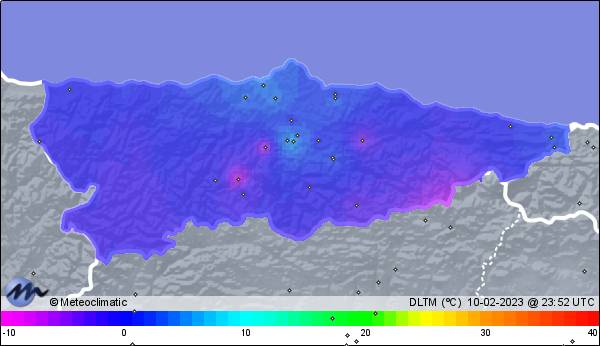 | 10-02-2023 | | | Máx. | Mín. | | | Temperatura | 10,9 | -2,7 | °C | | Humedad | 99 | 39 | % | | Viento | 9 | n/a | km/h | | Presión | 1.034 | 1.031 | hPa |