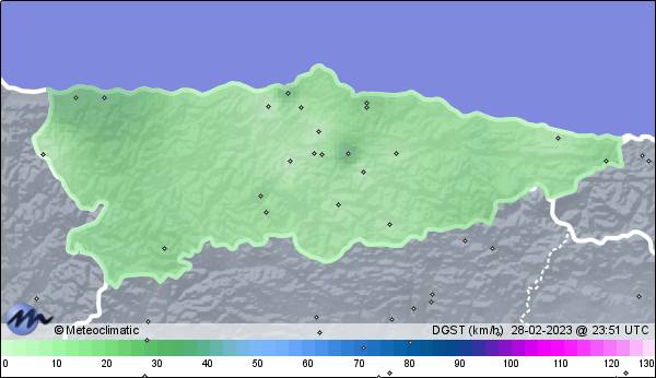 | 28-02-2023 | | | Máx. | Mín. | | | Temperatura | 8,7 | 4,3 | °C | | Humedad | 85 | 57 | % | | Viento | 32 | n/a | km/h | | Precipitación | 0,3 | mm |