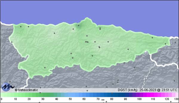 | 25-06-2023 | | | Máx. | Mín. | | | Temperatura | 21,4 | 18,6 | °C | | Humedad | 92 | 69 | % | | Viento | 35 | n/a | km/h | | Presión | 1.024 | 1.018 | hPa | | Precipitación | 0,0 | mm |