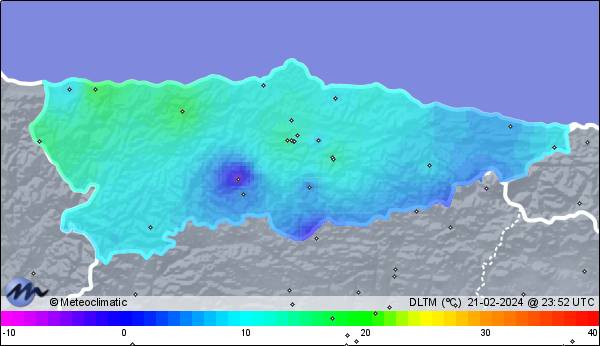 | 21-02-2024 | | | Máx. | Mín. | | | Temperatura | 16,9 | 6,0 | °C | | Humedad | 95 | 66 | % | | Viento | 9 | n/a | km/h | | Presión | 1.029 | 1.016 | hPa |