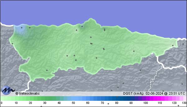 | 02-06-2024 | | | Máx. | Mín. | | | Temperatura | 18,5 | 8,9 | °C | | Humedad | 97 | 74 | % | | Viento | 32 | n/a | km/h | | Presión | 1.024 | 1.020 | hPa | | Precipitación | 0,0 | mm |