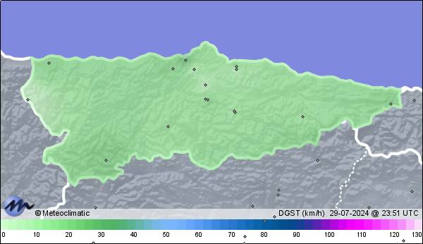| 29-07-2024 | | | Máx. | Mín. | | | Temperatura | 23,9 | 20,0 | °C | | Humedad | 99 | 85 | % | | Viento | 31 | n/a | km/h | | Presión | 1.018 | 1.013 | hPa | | Precipitación | 2,3 | mm |