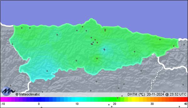 | Gijón (Somió) | 30 | n/a | 18,6 | 14,2 | n/a | 91 | 60 | n/a | 1.018 | 1.013 | n/a | 45 | - | 752,4 | |