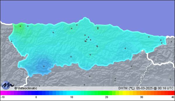 | 04-03-2025 | | | Máx. | Mín. | | | Temperatura | 13,8 | 4,9 | °C | | Humedad | 96 | 79 | % | | Viento | 16 | n/a | km/h | | Presión | 1.020 | 1.017 | hPa | | Precipitación | 0,8 | mm |