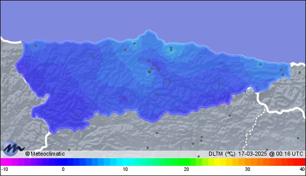 | 16-03-2025 | | | Máx. | Mín. | | | Temperatura | 10,8 | 3,9 | °C | | Humedad | 94 | 64 | % | | Viento | 37 | n/a | km/h | | Presión | 1.018 | 1.011 | hPa | | Precipitación | 0,6 | mm |