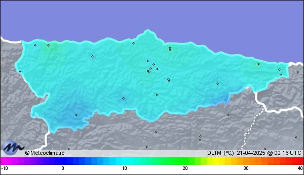 | 20-04-2025 | | | Máx. | Mín. | | | Temperatura | 16,9 | 6,9 | °C | | Humedad | 97 | 61 | % | | Viento | 39 | n/a | km/h | | Presión | 1.015 | 1.005 | hPa | | Precipitación | 0,4 | mm |