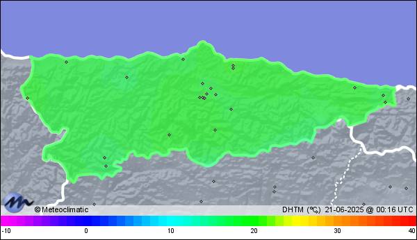 | 20-06-2025 | | | Máx. | Mín. | | | Temperatura | 22,1 | 16,8 | °C | | Humedad | 99 | 83 | % | | Viento | 31 | n/a | km/h | | Presión | 1.020 | 1.016 | hPa | | Precipitación | 0,0 | mm |