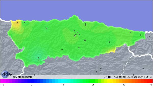 | 04-08-2025 | | | Máx. | Mín. | | | Temperatura | 24,1 | 16,4 | °C | | Humedad | 97 | 71 | % | | Viento | 32 | n/a | km/h | | Presión | 1.022 | 1.018 | hPa | | Precipitación | 0,0 | mm |
