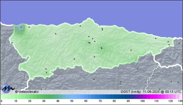 | Gijón (La Arena) | 25 | n/a | 22,0 | 21,4 | n/a | 93 | 92 | n/a | 1.017 | 1.016 | n/a | 4 | - | 251,1 | |
