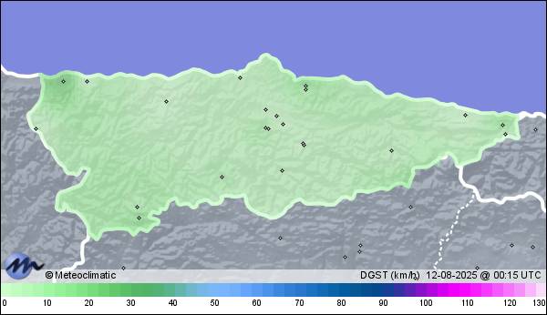 | 11-08-2025 | | | Máx. | Mín. | | | Temperatura | 30,0 | 18,5 | °C | | Humedad | 94 | 55 | % | | Viento | 35 | n/a | km/h | | Presión | 1.021 | 1.017 | hPa | | Precipitación | 1,3 | mm |