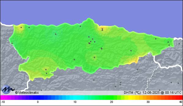 | 11-08-2025 | | | Máx. | Mín. | | | Temperatura | 29,9 | 16,9 | °C | | Humedad | 99 | 47 | % | | Viento | 12 | n/a | km/h | | Presión | 1.017 | 1.014 | hPa | | Precipitación | 0,0 | mm |