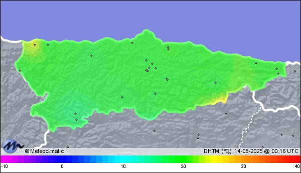 | 13-08-2025 | | | Máx. | Mín. | | | Temperatura | 21,3 | 19,1 | °C | | Humedad | 95 | 79 | % | | Viento | 18 | n/a | km/h | | Presión | 1.019 | 1.015 | hPa | | Precipitación | 0,0 | mm |
