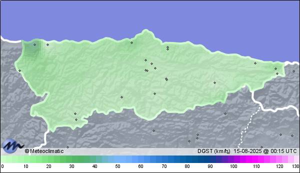 | 14-08-2025 | | | Máx. | Mín. | | | Temperatura | 22,7 | 18,2 | °C | | Humedad | 98 | 87 | % | | Viento | 40 | n/a | km/h | | Presión | 1.018 | 1.016 | hPa | | Precipitación | 0,0 | mm |