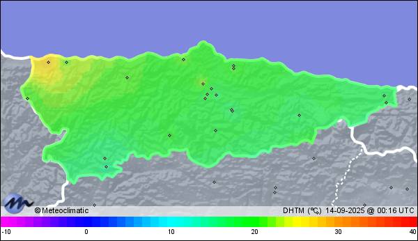 | 13-09-2025 | | | Máx. | Mín. | | | Temperatura | 25,1 | 13,8 | °C | | Humedad | 93 | 45 | % | | Viento | 13 | n/a | km/h | | Presión | 1.022 | 1.019 | hPa | | Precipitación | 0,0 | mm |