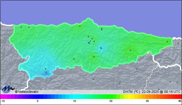 | 21-09-2025 | | | Máx. | Mín. | | | Temperatura | 16,0 | 8,0 | °C | | Humedad | 99 | 58 | % | | Viento | 22 | n/a | km/h | | Presión | 1.026 | 1.021 | hPa |