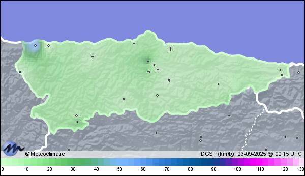| 22-09-2025 | | | Máx. | Mín. | | | Temperatura | 17,4 | 10,0 | °C | | Humedad | 95 | 78 | % | | Viento | 46 | n/a | km/h | | Presión | 1.023 | 1.020 | hPa | | Precipitación | 12,8 | mm |