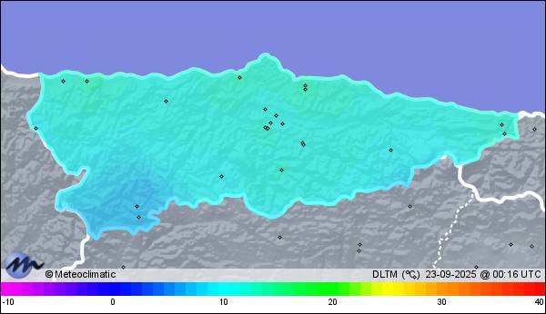 | 22-09-2025 | | | Máx. | Mín. | | | Temperatura | 17,4 | 10,0 | °C | | Humedad | 95 | 78 | % | | Viento | 46 | n/a | km/h | | Presión | 1.023 | 1.020 | hPa | | Precipitación | 12,8 | mm |