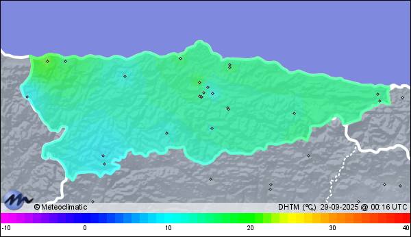 | 28-09-2025 | | | Máx. | Mín. | | | Temperatura | 21,3 | 14,1 | °C | | Humedad | 94 | 78 | % | | Viento | 15 | n/a | km/h | | Presión | 1.007 | 997 | hPa |