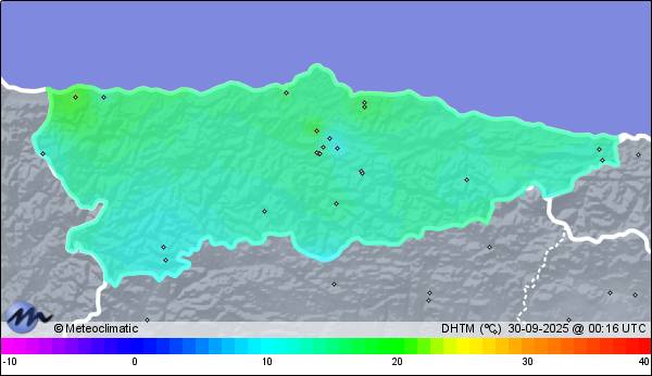 | 29-09-2025 | | | Máx. | Mín. | | | Temperatura | 17,4 | 7,3 | °C | | Humedad | 99 | 73 | % | | Viento | 20 | n/a | km/h | | Presión | 1.025 | 1.021 | hPa |