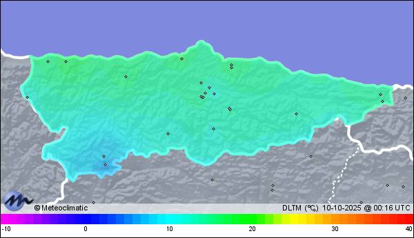 09-10-2025 | | Máx. | Mín. | | Temperatura | 18,5 | 12,8 | °C | Humedad | 100 | 74 | % | Viento | 19 | n/a | km/h | Presión | 1.029 | 1.024 | hPa | Precipitación | 2,2 | mm |