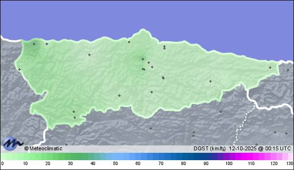 11-10-2025 | | Máx. | Mín. | | Temperatura | 25,2 | 8,9 | °C | Humedad | 97 | 57 | % | Viento | 58 | n/a | km/h | Presión | 1.027 | 1.022 | hPa | Precipitación | 0,0 | mm |
