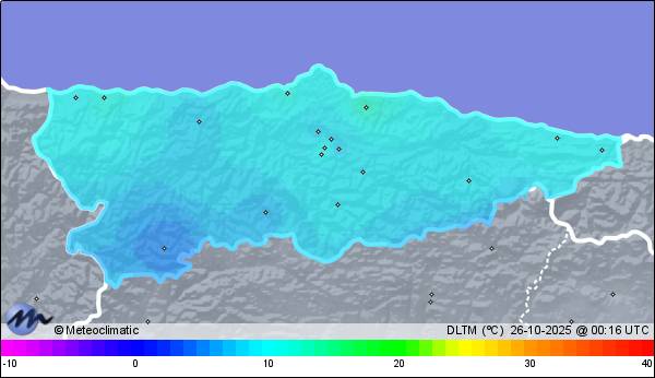 | 25-10-2025 | | | Máx. | Mín. | | | Temperatura | 15,3 | 10,3 | °C | | Humedad | 93 | 73 | % | | Presión | 1.019 | 1.012 | hPa | | Precipitación | 0,0 | mm |