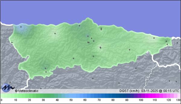 | Berrueñu (Teberga) | 610 | 14,3 | 17,0 | 5,3 | 58 | 93 | 50 | 1.026 | 1.027 | 1.022 | 5 WNW | 20 | x | x | |