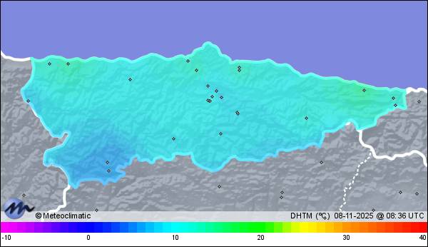| Actualizado: 03:58 UTC | 8,2°C 94% | 9,3 °C / 95% | | 7,8°C / 93% | | Calma | | 5 km/h | | 1.019 hPa |