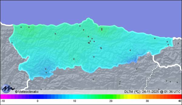 | Berrueñu (Teberga) | 610 | 12,8 | 13,4 | 11,9 | 68 | 75 | 61 | 1.013 | 1.013 | 1.012 | 6 NW | 26 | x | x | |