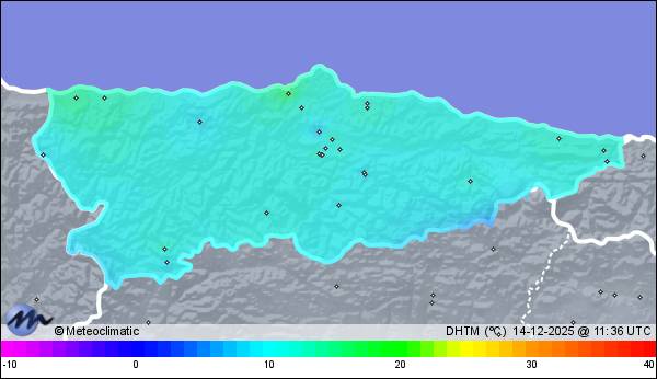 | Actualizado: 05:33 UTC | 7,5°C 93% | 9,8 °C / 95% | | 7,0°C / 86% | | 1.022 hPa |