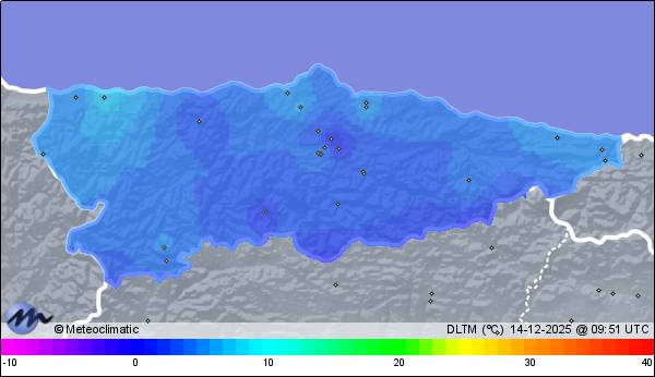 | Escarcha | | Actualizado: 04:13 UTC | 1,4°C 98% | 3,7 °C / 98% | | 0,9°C / 97% | | Calma | | 2 km/h | | 1.025 hPa | | 0,2 mm |