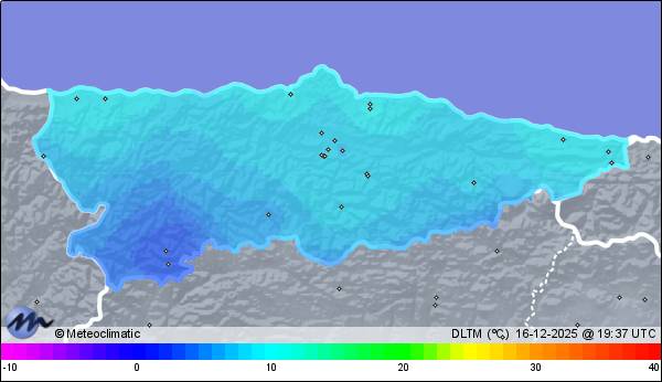 | Actualizado: 11:01 UTC | 6,9°C 82% | 6,9 °C / 95% | | 4,1°C / 82% | | 5 km/h ENE | | 18 km/h | | 1.010 hPa | | 5,4 mm |