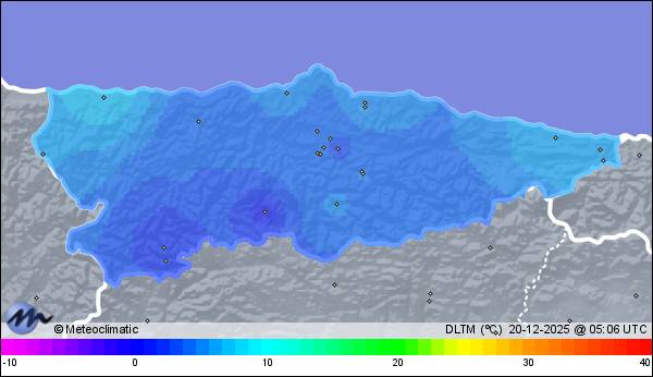 | Actualizado: 01:13 UTC | 3,5°C 99% | 3,6 °C / 99% | | 3,0°C / 99% | | Calma | | 6 km/h | | 1.020 hPa | | 0,1 mm |