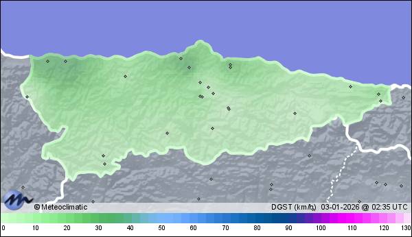 | Gijón (La Arena) | 25 | 9,9 | 9,9 | 9,8 | 95 | 96 | 95 | 1.007 | 1.007 | 1.006 | 4 ESE | 22 | - | 3,3 | |