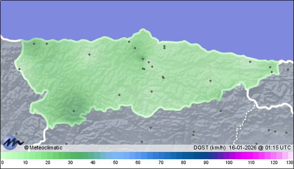 | Actualizado:15-01-2026 23:45 UTC | 7,2°C 91% | 16,1 °C / 94% | | 4,9°C / 46% | | 1 km/h ESE | | 45 km/h | | 1.011 hPa | | 0,4 mm |