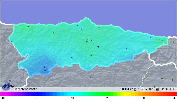 | Berrueñu (Teberga) | 610 | 9,7 | 9,8 | 9,6 | 66 | 67 | 66 | 1.002 | 1.002 | 1.002 | 14 ESE | 26 | x | x | |