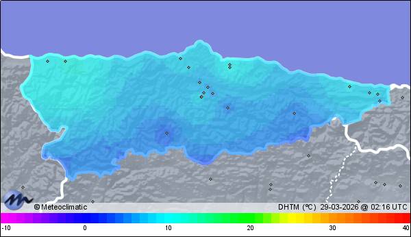 | Actualizado: 01:03 UTC | 9,2°C 81% | 9,7 °C / 81% | | 9,2°C / 76% | | Calma | | 8 km/h | | 1.035 hPa |