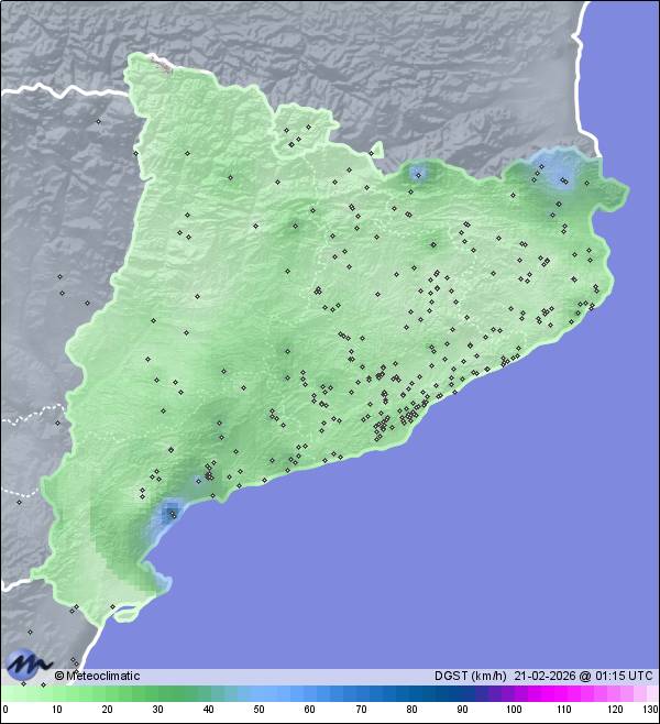 | Cadí Est- PN Cadí-Moixeró | 2440 | -0,9 | -0,7 | -0,8 | 97 | 97 | 96 | x | x | x | 29 WSW | 34 | - | - | |