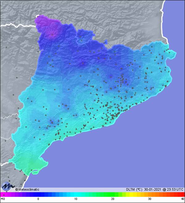 | 30-01-2021 | | | Máx. | Mín. | | | Temperatura | 9,3 | -0,2 | °C | | Humedad | 97 | 78 | % | | Viento | 11 | n/a | km/h | | Presión | 1.017 | 1.003 | hPa |