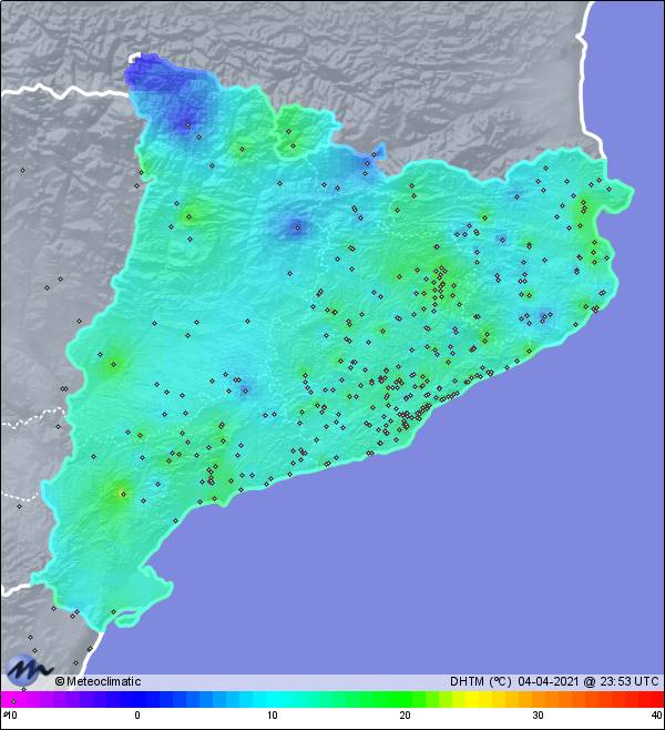 | 04-04-2021 | | | Máx. | Mín. | | | Temperatura | 17,7 | 9,8 | °C | | Humedad | 92 | 45 | % | | Viento | 29 | n/a | km/h | | Presión | 1.019 | 1.013 | hPa | | Precipitación | 0,0 | mm |
