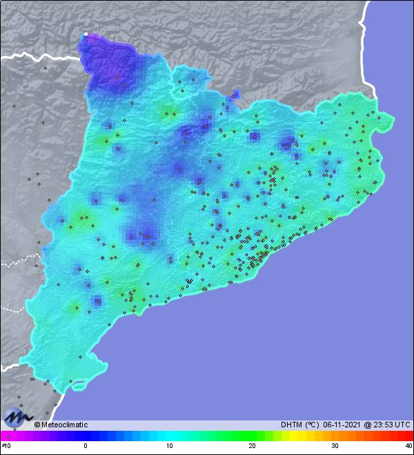 | 06-11-2021 | | | Máx. | Mín. | | | Temperatura | 15,4 | -3,0 | °C | | Humedad | 94 | 48 | % | | Viento | 14 | n/a | km/h | | Presión | 1.030 | 1.023 | hPa |