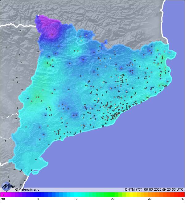 | 06-03-2022 | | | Máx. | Mín. | | | Temperatura | 7,6 | 4,6 | °C | | Humedad | 79 | 67 | % | | Presión | 1.018 | 1.016 | hPa | | Precipitación | 0,0 | mm |