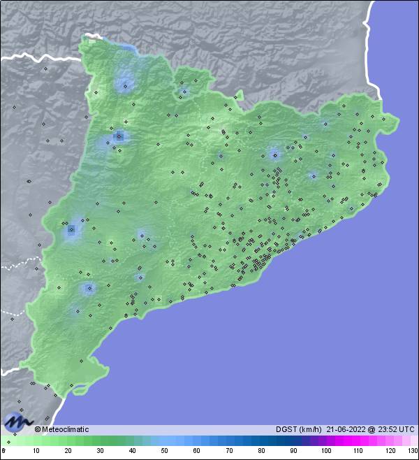 | 21-06-2022 | | | Máx. | Mín. | | | Temperatura | 29,2 | 23,0 | °C | | Humedad | 90 | 69 | % | | Viento | 40 | n/a | km/h | | Presión | 1.013 | 1.008 | hPa | | Precipitación | 2,8 | mm |