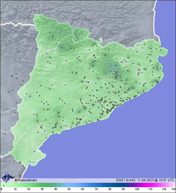 | 11-04-2023 | | | Máx. | Mín. | | | Temperatura | 17,9 | 13,7 | °C | | Humedad | 90 | 75 | % | | Viento | 26 | n/a | km/h | | Presión | 1.023 | 1.016 | hPa | | Precipitación | 0,0 | mm |
