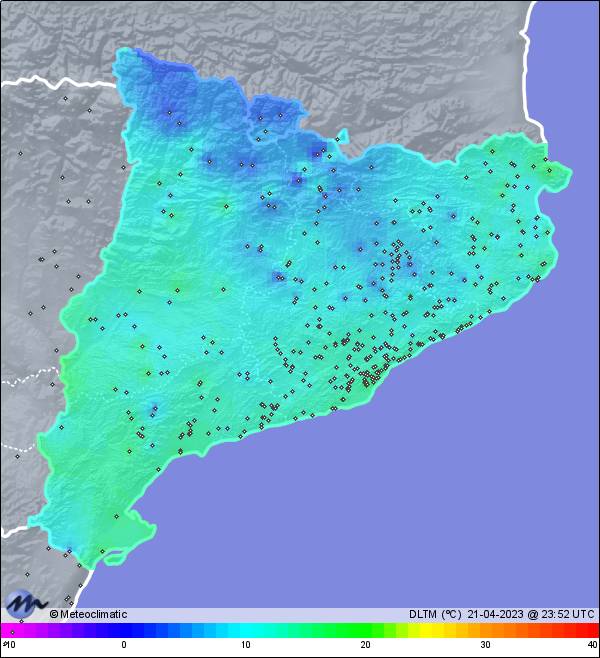 | 21-04-2023 | | | Máx. | Mín. | | | Temperatura | 16,8 | 9,4 | °C | | Humedad | 95 | 72 | % | | Viento | 45 | n/a | km/h | | Presión | 1.009 | 1.005 | hPa | | Precipitación | 0,3 | mm |