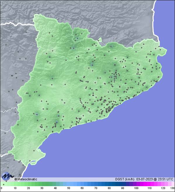 | 03-07-2023 | | | Máx. | Mín. | | | Temperatura | 29,7 | 20,3 | °C | | Humedad | 94 | 41 | % | | Viento | 32 | n/a | km/h | | Presión | 1.020 | 1.016 | hPa | | Precipitación | 0,0 | mm |